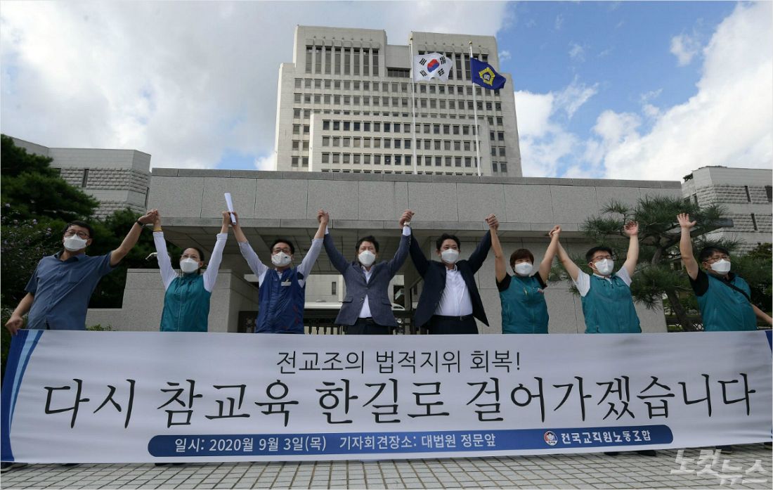 ◆ 권정오> 형식적으로는 그렇습니다. 형식적으로는 그런데 오늘 대법원의 판결이 너무나 명확했어요. 전교조 법외노조 조치를 취한 해당 근거가 됐던 노동조합법 시행령 9조 2항이 원천무효다. 이렇게 판결됐기 때문에 아마 저희들이 대법원에서 오늘 재판 결과를 듣고 이 전교조 본부사무실로 돌아오는 과정에서 고용노동부가 이 재판의 결과에 따라서 전교조 법외노조 취소 조치를 지속적으로 시행하겠다는 보도자료를 낸 것으로 듣고 있고요.