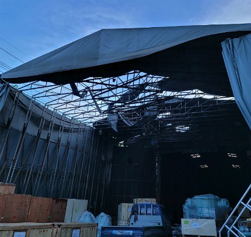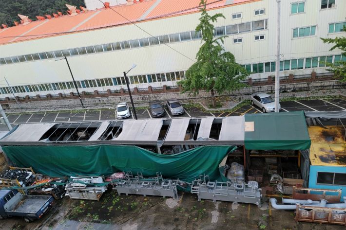 산업현장에서 발생한 대부분의 피해는 강풍을 이기지 못한 공장의 외벽 손실과 지붕 판넬 탈락, 이로 인한 2차 피해였다.