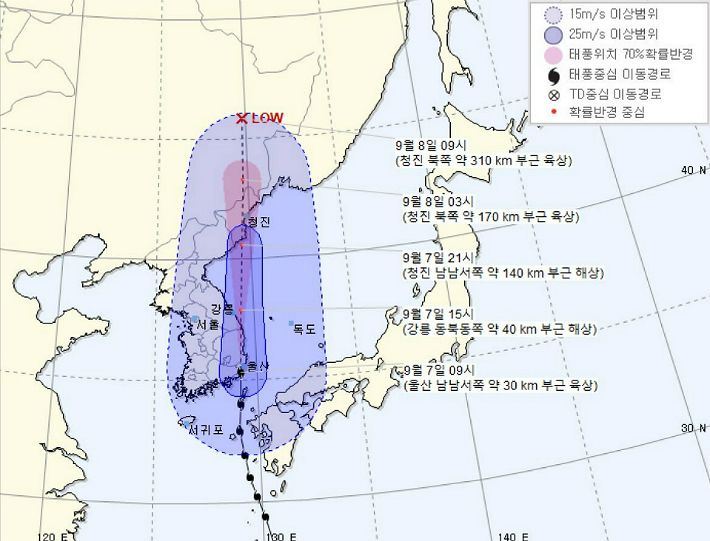 청주기상지청 관계자는 "태풍의 영향으로 강한 바람과 많은 비가 내리겠다"며 "시설물 관리와 농작물 낙과 등 태풍 피해에 각별히 유의해 달라"고 당부했다.