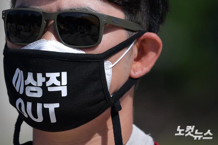 제주항공과의 인수합병이 무산된 이스타항공이 임직원 605명에게 정리해고를 통보한 가운데 8일 서울 청와대 분수대 앞에서 이스타항공 조종사노조가 대량 정리해고 사태 해결을 촉구하는 기자회견을 하고 있다.