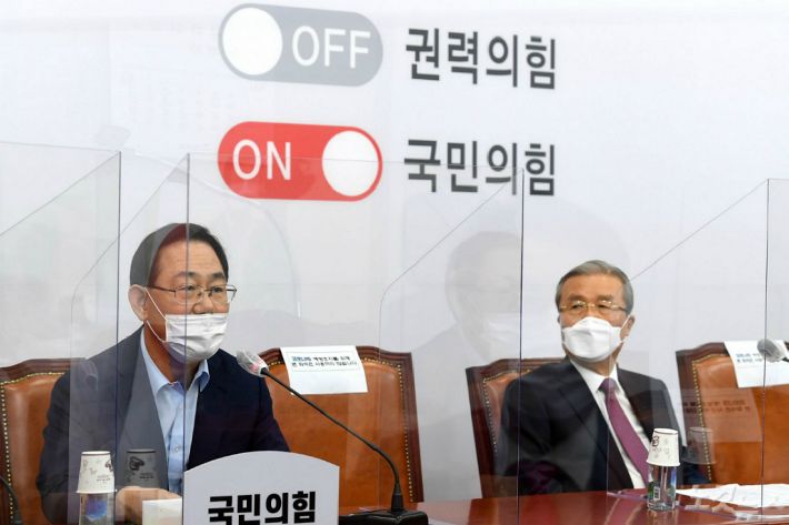 주호영 국민의힘 원내대표(왼쪽)가 지난 10일 오전 서울 여의도 국회에서 열린 비상대책위원회의에 참석해 모두 발언하고 있다.(사진=윤창원 기자)
