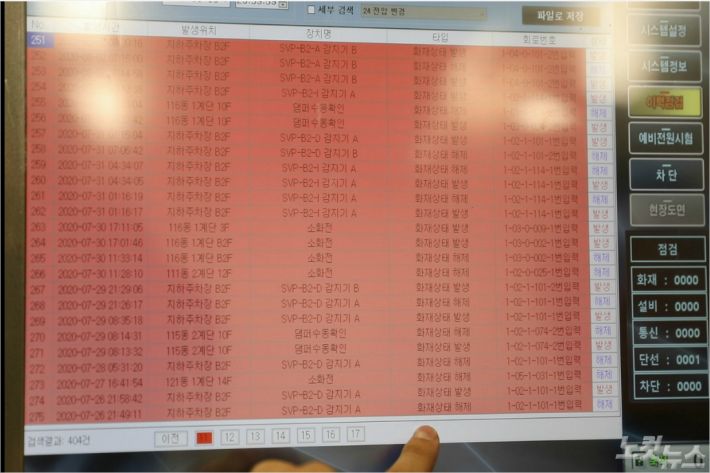 해당 아파트의 방재실에 있는 화재 경보 시스템을 확인하니 지난 9일 오전에만 3건의 화재 경보가 울렸으나 오작동이었다.