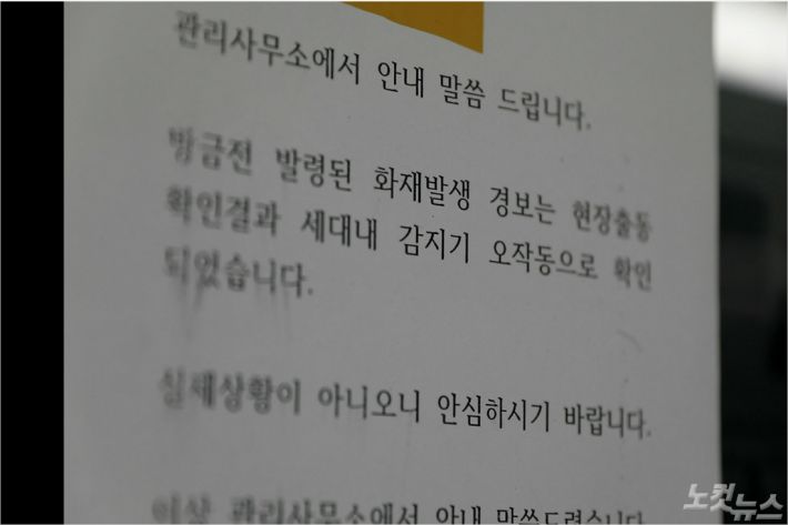 E 아파트 관리소 직원은 "실제 화재면 비상방송이 나가고 대피를 해야 하지만 불이 나도 방송이 안 나가고 관리소가 확인해야 하니 한 템포 늦을 수밖에 없다"고 말했다.