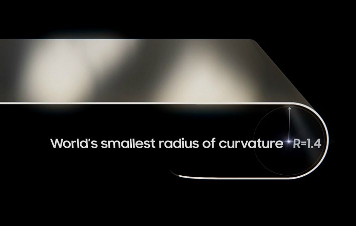 삼성디스플레이가 업계 최소 곡률인 1.4R 폴더블 OLED 상용화에 성공했다. 곡률(R)값이 작을수록 접히는 부분의 비는 공간이 없어 완벽하게 접혔다고 볼 수 있다.