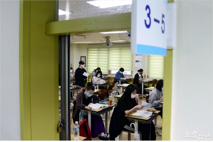 대면수업이 금지됐던 300인 이상 대형학원에서도 최소 1m 이상 거리두기 등 방역 조처를 준수하고, 시험실 당 인원을 50명 이내로 제한한 상태에서 시험을 치렀다.