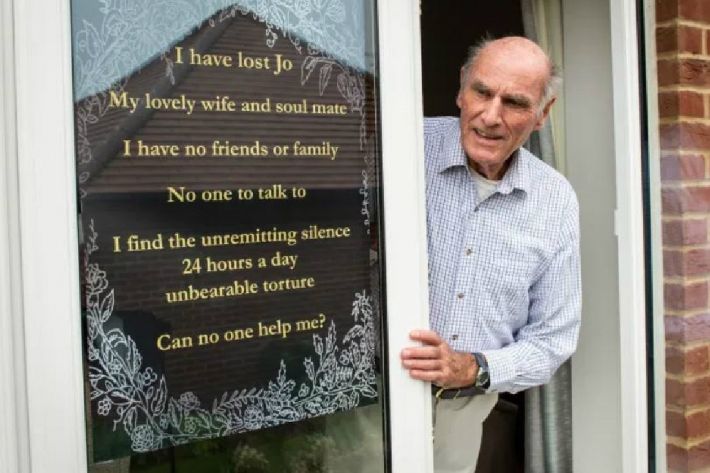 창문에 외로움을 호소하는 문구를 붙여 놓은 토니 윌리엄스(75) 할아버지. (사진=연합뉴스)