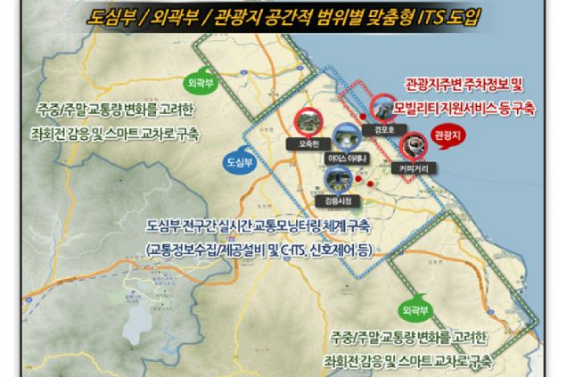 이를 위해 도심부, 외곽부, 관광지 등 지역 특색에 맞게 맟춤형 ITS를 도입해 관광거점도시 조성사업, 도시재생 활성화 사업 등과 연계해 사업효과가 극대화될 수 있도록 추진한다는 전략이다.