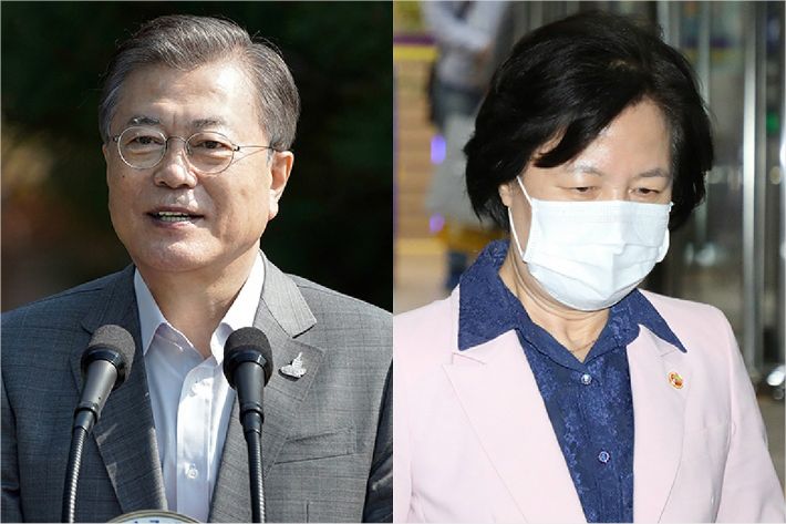 문재인 대통령과 추미애 법무부 장관(사진=연합뉴스/자료사진)