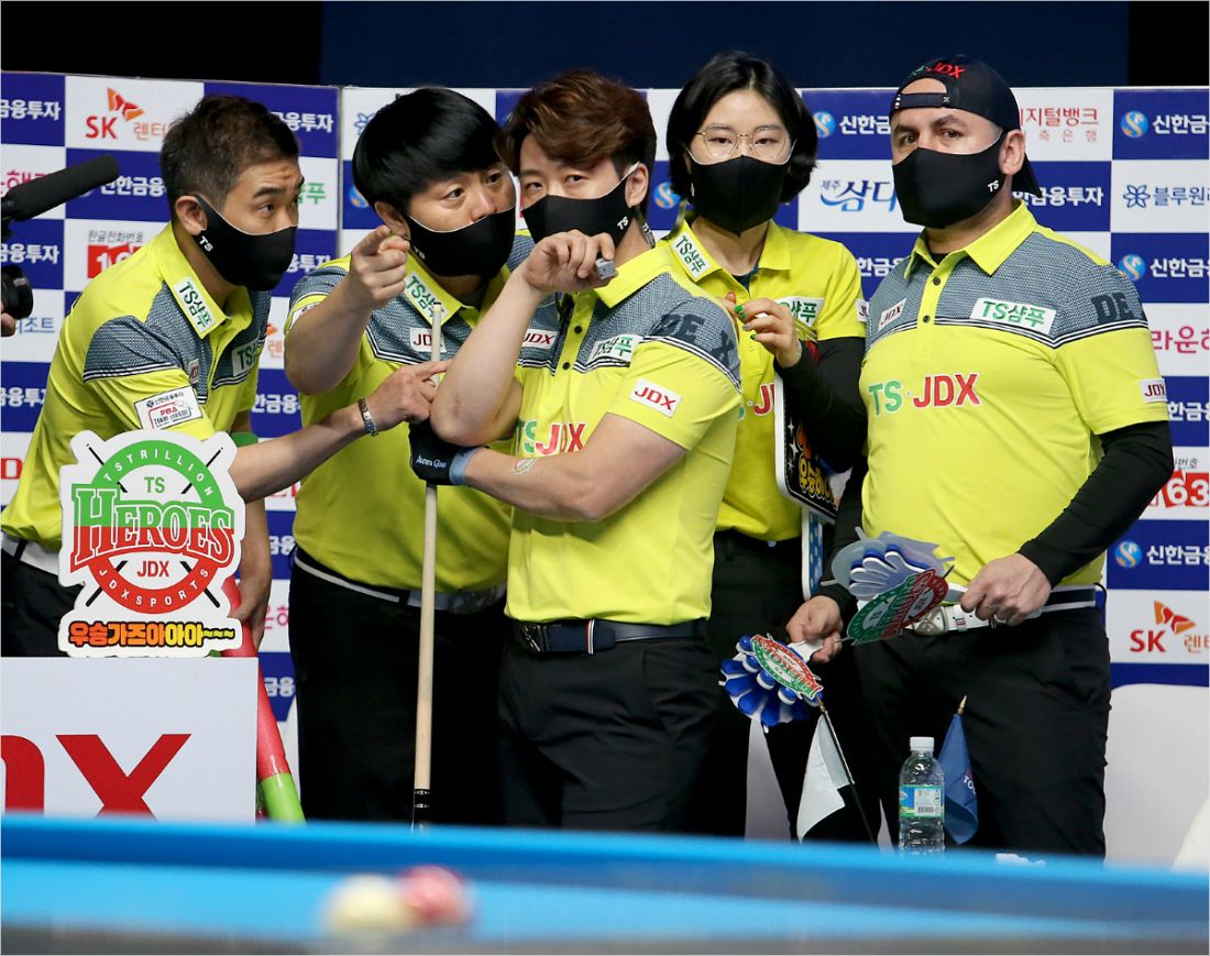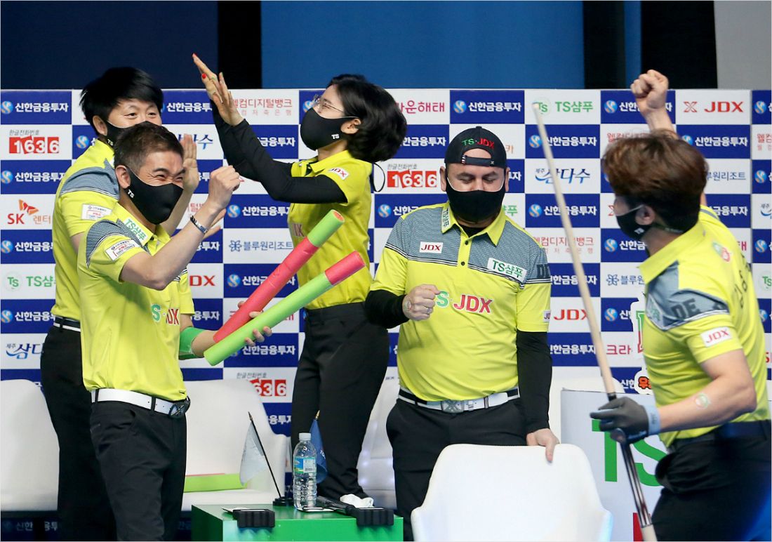 TS•JDX는 25일 경기도 고양시 빛마루방송센터에서 열린 '신한금융투자 PBA 팀 리그 2020-2021' 2라운드 최종일 SK렌터카를 4 대 1로 눌렀다. 마지막 6세트는 치르지 않고도 승리를 확정했다.