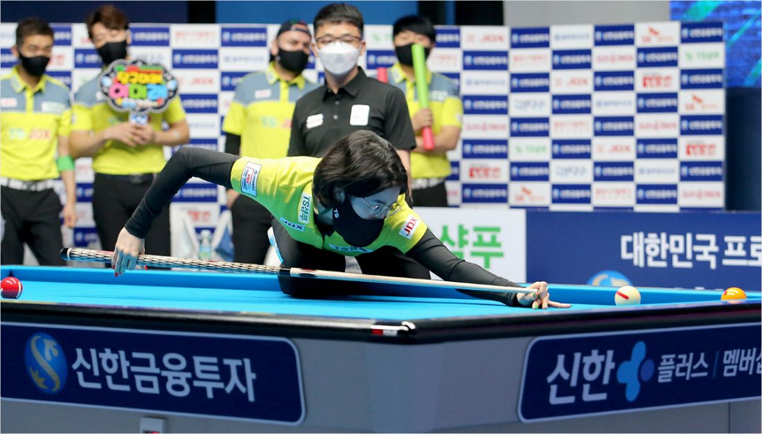 '당구 여신의 샷' 이미래가 25일 SK 렌터카와 경기에서 샷을 구사하고 있다.(고양=PBA)