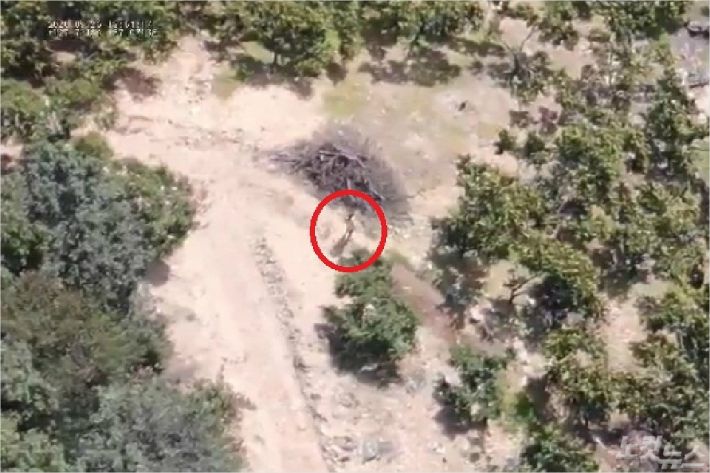 지난 26일 충주시 노은면 국망산에서 실종된 30대(빨간 원 안)가 소방 드론 수색으로 발견돼 무사히 구조됐다. (사진=충청북도 소방본부 제공)