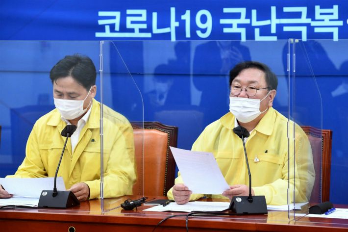 더불어민주당 김태년 원내대표(오른쪽)와 김영진 원내총괄수석부대표. (사진=연합뉴스)