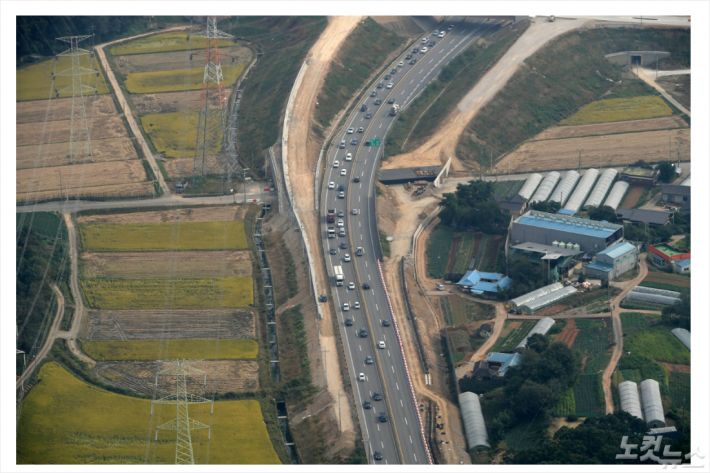 추석 연휴를 하루 앞둔 29일 오후 경기도 평택서해안고속도로에서 귀성길에 오른 차량들이 지나고 있다. [항공촬영 협조 : 서울청 항공대 조종사: 심동국 경위, 경기북부청 항공대 박형식 경위] 이한형기자