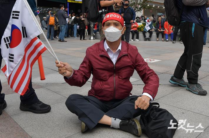 경찰 해산 권유에 바닥에 앉은 집회 참가자