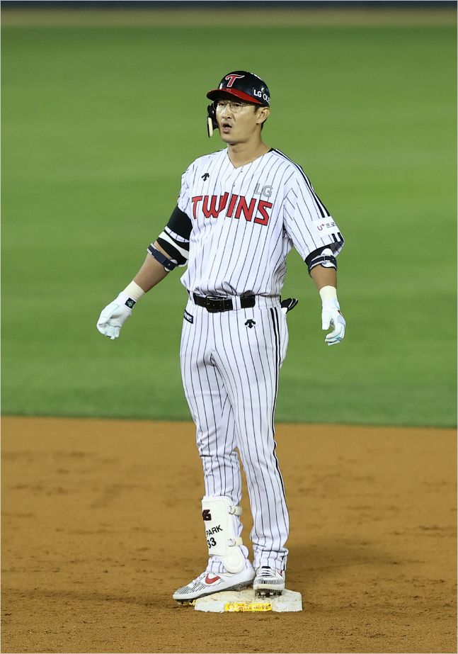 박용택은 6일 오후 서울 잠실구장에서 열린 KBO 리그 삼성 라이온즈와 홈경기에서 2대2로 맞선 9회말 1사 1루에서 대타로 출전해 이승현을 상대로 우익수 키를 넘기는 2루타를 때렸다.