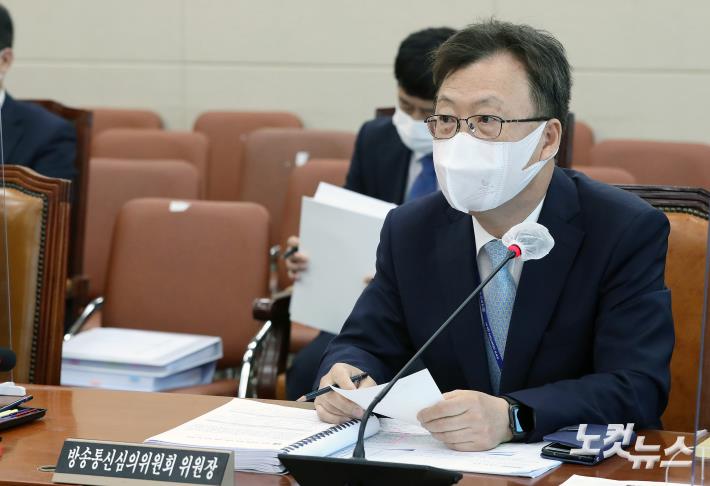 질의에 답하는 강상현 방송통신심위원장