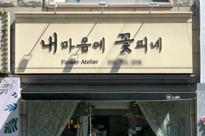 574돌 한글날 맞이 아름다운 우리말 가게 이름 뽑기 행사에서 으뜸상으로 선정된 '내마음에 꽃피네'(사진=경상대 국어문화원 제공)
