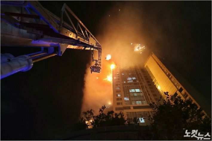 8일 오후 11시7분쯤 울산시 남구 신정동의 한 주상복합 건물에서 대형 화재가 발생했다. (사진=울산소방본부 제공)
