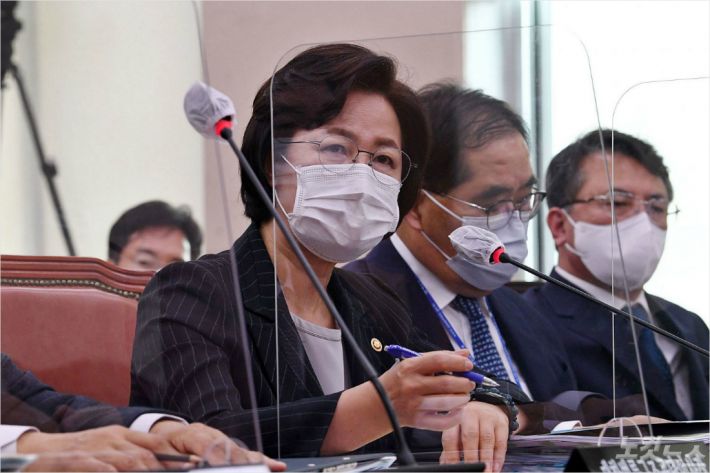 추미애 법무부장관이 12일 국회에서 열린 법제사법위원회의 법무부 등에 대한 국정감사에서 의원의 질의에 답변하고 있다.(사진=박종민 기자)