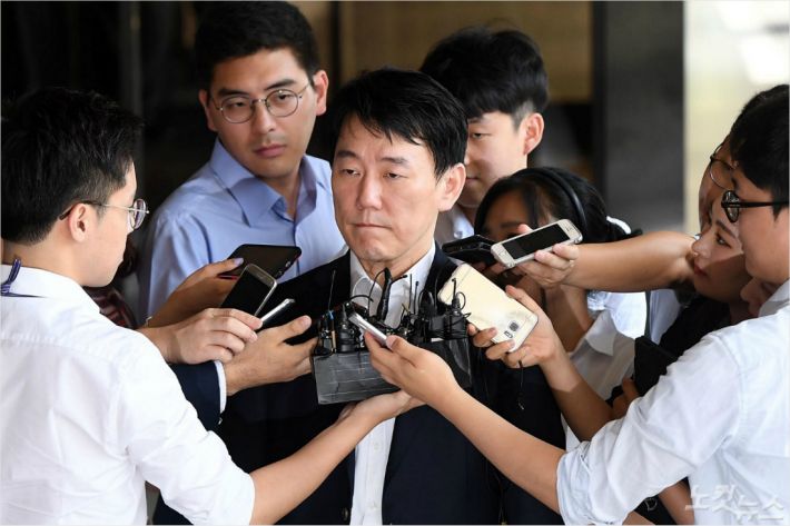 수십억원대 횡령 등의 혐의로 피소된 프로야구 히어로즈의 이장석 대표가 2016년 8월 검찰 조사를 받기 위해 서울 서초구 서울중앙지검으로 출석한 모습.(자료사진=박종민 기자)