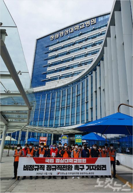 지회는 비정규직 노조도 참여하는 노사전 협의체 구성과 정규직 전환을 요구하며 지난 12일 창원경상대병원 앞에서 2시간 부분파업을 한 데 이어 오는 23일 진주 경상대병원 앞에서도 집회를 열어 목소리를 낼 예정이다.