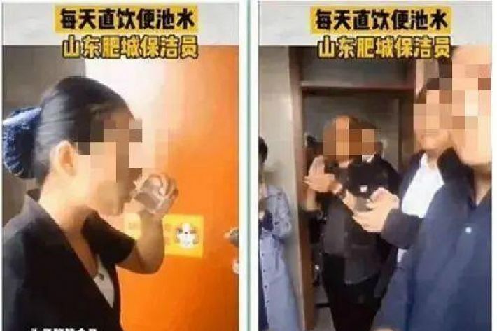 중국에서 한 기업의 청소 담당 직원이 화장실의 청결 상태를 보여준다며 화장실 변기의 물을 마셔 논란이 일었다.