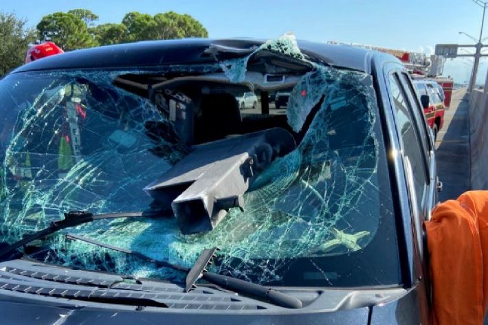 폭스뉴스에 따르면 미국 플로리다 주민 에두아르도 메디나(64)는 지난 12일(현지시간) 오후 델레이비치 인근 고속도로를 운전하던 중 갑자기 쇳덩이가 날아와 앞유리에 꽂히는 봉변을 당했다.