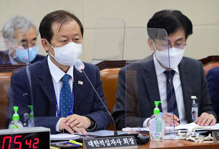 국감 답변하는 신희영 대한적십자사 회장