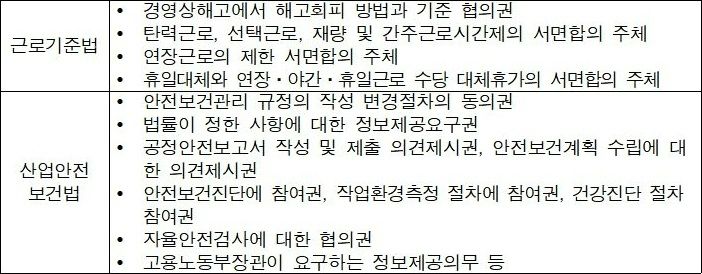 근로(노동)자대표의 주요권한(자료=경제사회노동위원회 제공)