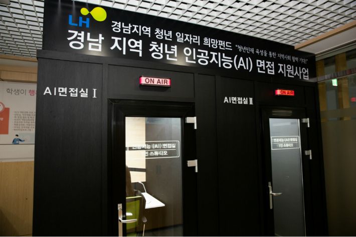 인공지능 면접 체험 부스는 경남과기대와 한국토지주택공사(LH)가 협력해 추진한 '경남지역 청년 일자리 희망펀드 지원사업'의 일환으로 대학본부 1층에 마련됐다.