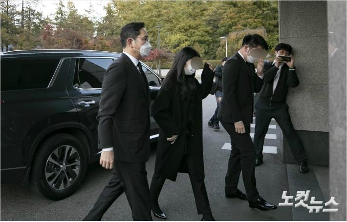 이건희 삼성그룹 회장이 별세한 25일 서울 강남구 삼성서울병원 장례식장에 이재용 삼성전자 부회장이 아들 지호 군, 딸 원주 양과 함께 빈소로 향하고 있다.