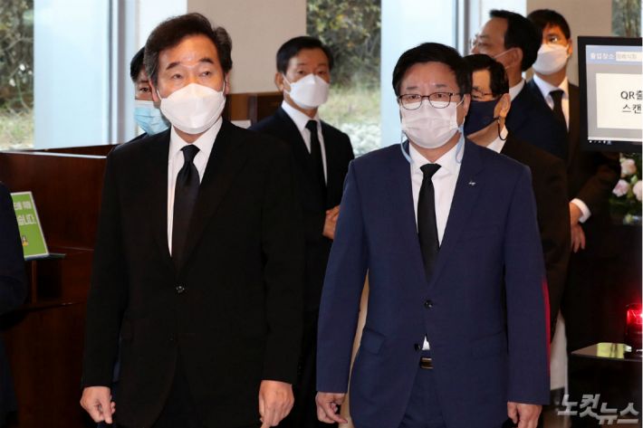 이낙연 더불어민주당 대표가 26일 오전 고(故) 이건희 삼성그룹 회장의 빈소가 마련된 서울 강남구 삼성서울병원 장례식장에서 조문을 마친 뒤 건물을 나서고 있다.(사진=사진공동취재단)