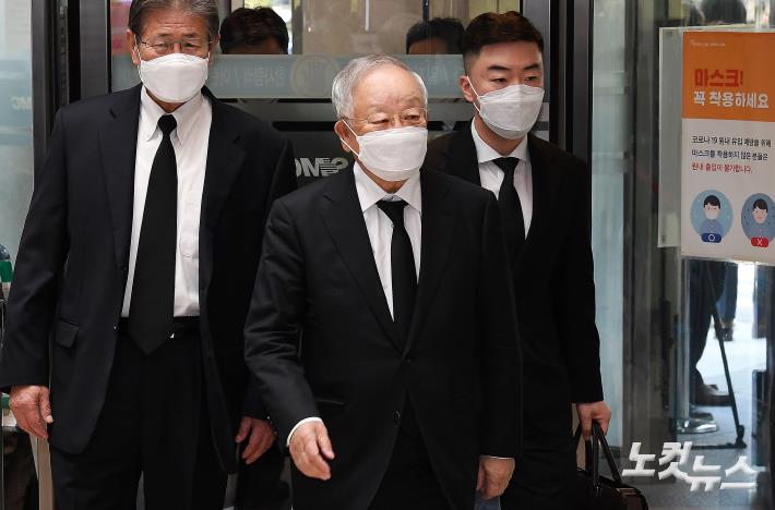 손경식 한국경영자총협회 회장(가운데)이 26일 오후 고 이건희 삼성그룹 회장 빈소가 마련된 서울 강남구 삼성서울병원 장례식장에 들어서고 있다.