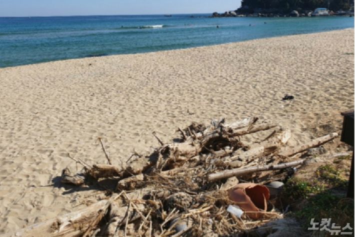 밑동을 드러낸 나무들로 뒤섞인 해양쓰레기들 사이로 관광객들은 힘겹게 발을 내디디고 있었다. 양양군은 응급복구 차원에서 해변에 뒤덮인 쓰레기를 긁어 모아놨지만, 예산부족 등 이유로 반출하지 못했다. 연이은 태풍으로 양양지역에서 발생한 해양쓰레기는 5천여 t인 것으로 파악됐다. 동해안 전체로 파악하면 2만 6백여 t에 이른다.