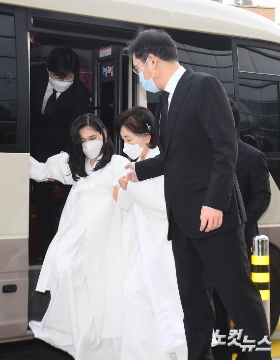 이건희 회장 영결식장 도착한 홍라희 여사-이부진 사장