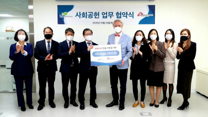 이번 협약에 따라 LH는 국경없는의사회에 코로나19 긴급구호금 1천만원을 기부하고, 국경없는의사회는 LH 임직원과 함께 2회에 걸쳐 '미씽맵-생명을 살리는 지도 만들기' 사회공헌활동을 진행한다.