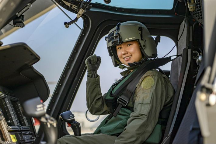 해병대에서 처음으로 여군 헬기 조종사가 탄생했다. 지난 2017년 임관한 조상아 대위(27세, 학군)이다.