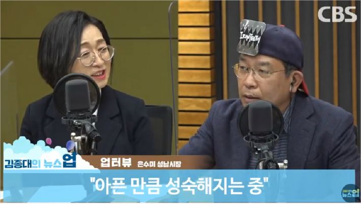 ◇ 김종대> 이번에는 기분을 업시켜주는 인터뷰 뉴스업의 주력 코너죠. 업터뷰 시간입니다. 오늘 출연하실 이분 참 곡절이 많은분 중 한 분입니다. 노동운동에 투신하던 시절 6년 동안 감옥에서 복역하셨습니다. 최근 2년여 또 송사에 시달리셨습니다. 무거운 짐을 얼마 전에 벗게 됐습니다. 은수미 성남시장님 나오셨습니다.