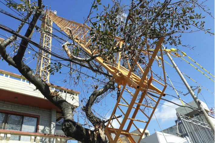 3일 소방 당국과 경찰에 따르면 이날 오전 11시 51분쯤 서귀포시 남원읍 위미리 한 오피스텔 공사현장에 있는 타워크레인이 인근 주택가로 쓰러졌다.
