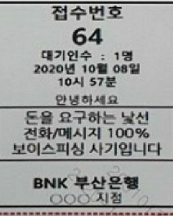 부산경찰은 보이스피싱 근절을 위해 부산은행 대기 번호표에 관련 예방 문구를 기입하는 등 협업체계를 구축하기로 했다.