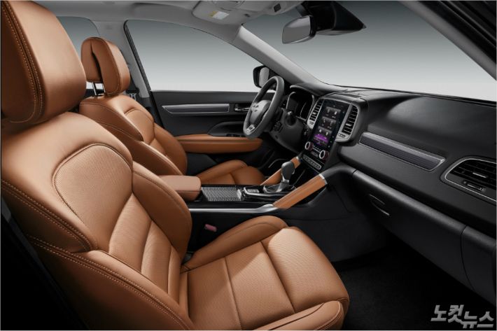 실내공간에선 '모던 브라운' 가죽시트를 새롭게 적용했다. 동급 유일의 프레임리스 룸 미러를 갖췄다. 프레임리스 룸 미러는 산뜻하고 세련된 분위기를 연출할 뿐 아니라, 후방 시야를 한층 넓혀준다고 한다.