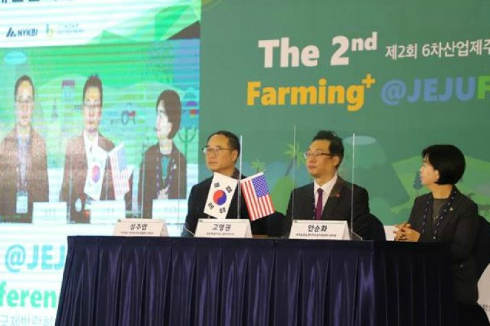 이날 박람회 개막식에는 제주도와 뉴욕한인경제인협회 간 실시간 온라인 영상을 통해 '제주6차산업 우수제품 해외수출 활성화' 업무협약을 체결했다. 이번 협약은 제주6차산업 우수제품 해외수출 활성화를 위한 파트너십 구축을 위해 마련됐다.