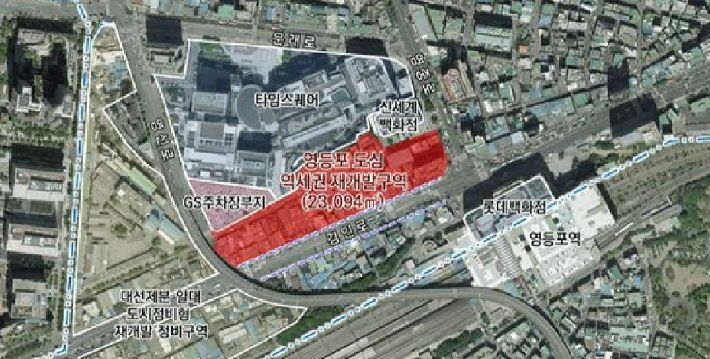 붉은색 부분이 영등포 도심 역세권 도시정비형 재개발 정비사업부지(사진=영등포구 제공)