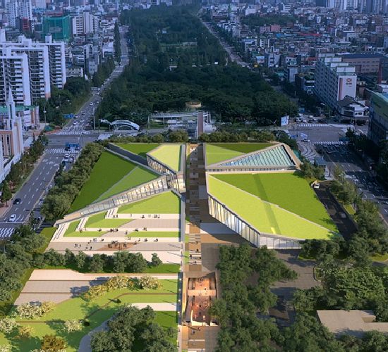 인천시청역은 GTX-B와 인천도시철도 1, 2호선이 교차하고 인천시청, 교육청 등 공공시설이 밀집한 환승역으로, 인천 남동구는 도시공원 내 입지 특성을 살린 안을 마련했다. 중앙공원의 동서축 높이차를 이용해 공원 속에 버스, 택시, 개인형 이동수단(PM) 등이 연계된 친환경 환승센터를 만들겠다는 계획이다. 높은 주거 인구 비율을 고려해 도서관, 체육시설 등 생활SOC 시설도 추가한다.