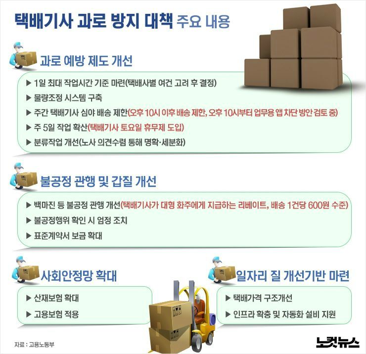 최근 연이은 사망 사고로 과로사 논란이 불거졌던 택배기사들의 노동조건을 개선하기 위한 정부의 종합대책이 공개됐다.