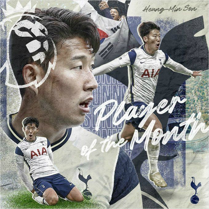 손흥민은 지난 13일 프리미어리그 10월의 선수로 선정됐다. 10월 열린 프리미어리그 3경기에 모두 출전해 4골 2어시스트를 기록했다. 해리 케인(토트넘)과 잭 그릴리쉬(애스턴 빌라) 등 경쟁자들을 제치고 개인 통산 세 번째 이달의 선수상을 수상했다.