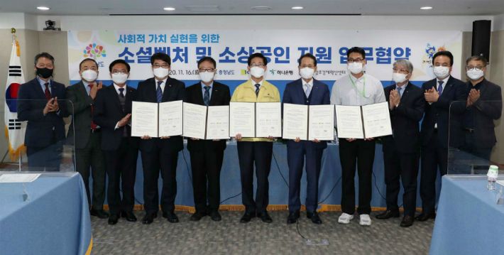 충남도가 소셜벤처기업 육성과 소상공인 판로 개척을 위해 도내 공공기관, 금융기관 및 민관 기업과 힘을 모았다.