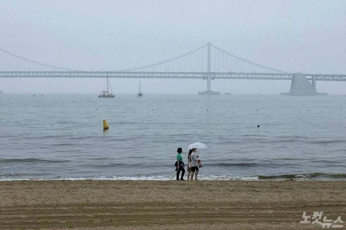 비 내리는 광안리 해수욕장(사진=박진홍 기자)