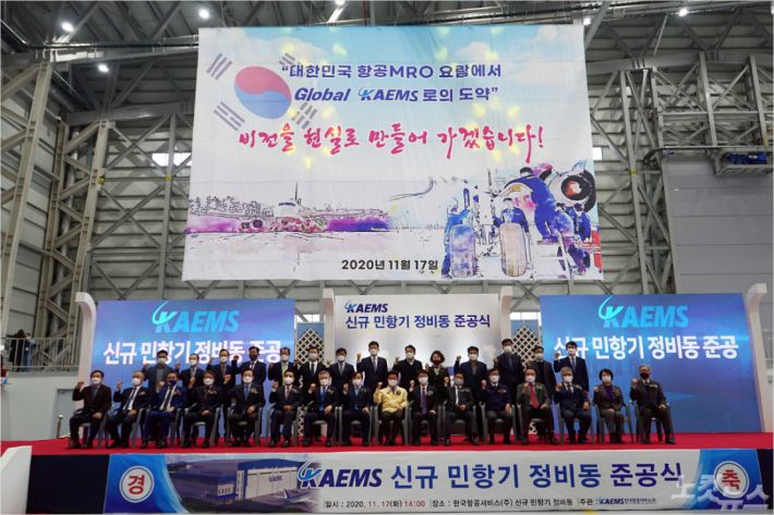 한국항공서비스(주)(KAEMS)는 17일 경남 사천 본사에서 신규 민항기 정비동 준공식을 개최했다. (사진=KAEMS 제공)