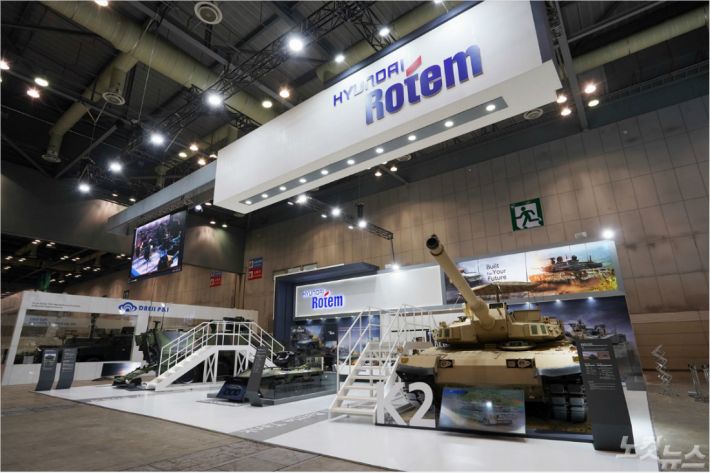 현대로템은 주력 제품인 K2 전차와 성능개량형 차륜형장갑차, 다목적 무인차량(HR-셰르파) 등 첨단 기술이 접목된 제품을 선보이며 수주 활로 개척에 나선다.